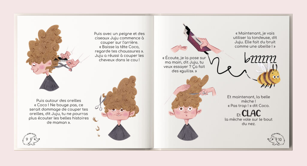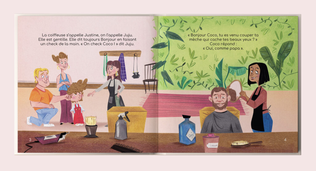 Création d’un Livre en Collaboration avec des Coiffeurs professionnels. Le thème de ce livre est l’appréhension du coiffeur chez les enfants, avec pour objectif de les aider et de les détendre lors de leurs visites chez le coiffeur.