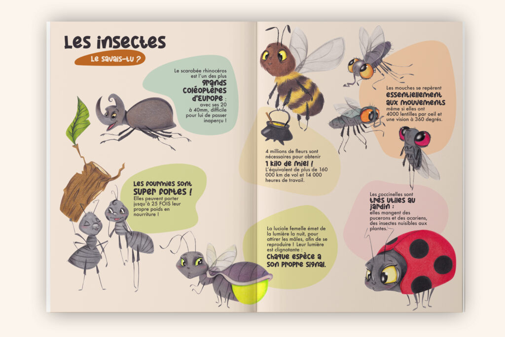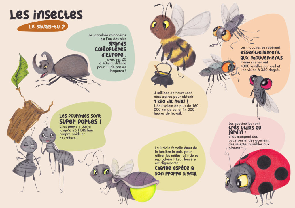 Cette illustration incite les jeunes lecteurs à prendre conscience de l’importance de préserver la nature et d’apprendre à coexister avec ces petits habitants de la Terre. Elle rappelle que les insectes jouent un rôle énorme dans l’équilibre de notre planète.