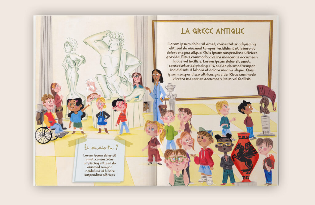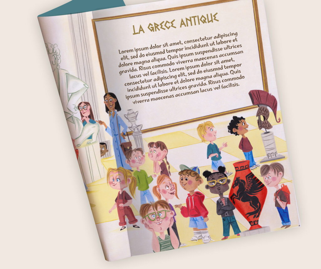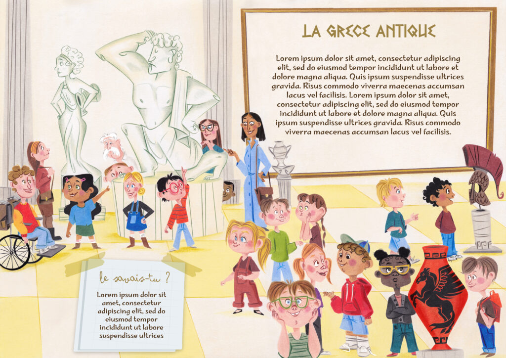 Création d’une illustration sur le thème de la Grèce antique, pensée pour accompagner un article destiné aux 8-10 ans