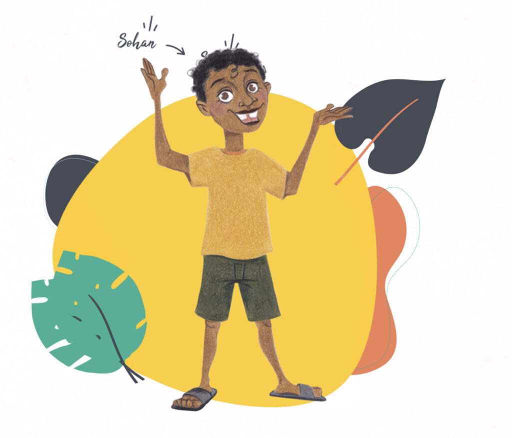 Création de Sohan, le personnage qui accompagne les petits lecteurs à chaque aventure au fil des histoires.