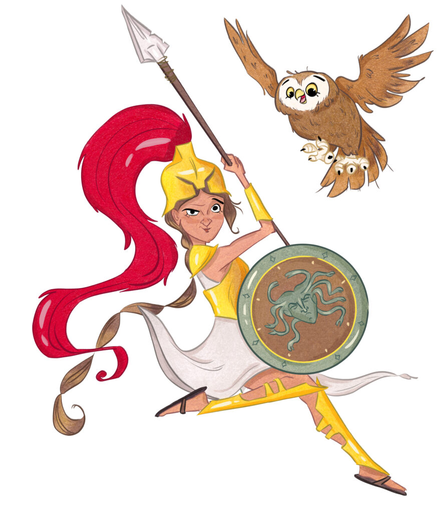 Dans le cadre d’un projet personnel, j’ai illustré deux grandes figures de la mythologie grecque : Artémis, déesse de la nature sauvage et de la chasse, et Athéna, déesse de la sagesse et de la stratégie.