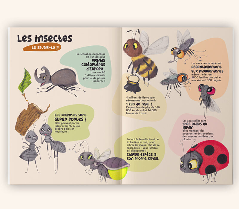 Cette illustration incite les jeunes lecteurs à prendre conscience de l’importance de préserver la nature et d’apprendre à coexister avec ces petits habitants de la Terre. Elle rappelle que les insectes jouent un rôle énorme dans l’équilibre de notre planète.